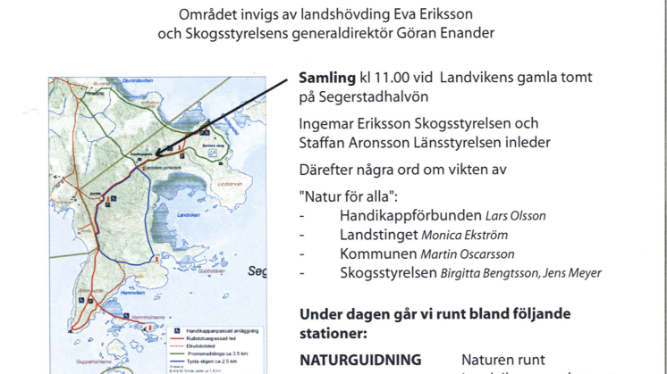 Pressen inbjuds att närvara under invigningen. Program med karta bifogas, samt en informationsskrift om Segerstads naturreservat.