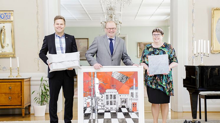Genom stöd av näringslivet i Värmland överlämnade landshövdingen dessutom ett konstverk av Karlstadskonstnären Karolina Nolin samt specialdesignade produkter från Klässbols Linneväveri.