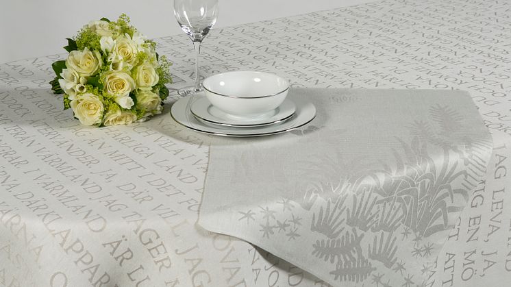 - Duken har fått sitt mönster med hjälp av Värmlandsvisan som beskriver en kärlek till naturen. Bokstäverna och orden bildar ett mönster av ränder som flödar över duken. Servettens mönster återspeglar de mossor och övrig vegetation som är typiska för naturreservatet Byamossarna. Motivet är abstrakt och storlekarna förvrängda. Dessutom är ränderna inspirerade från kartans beteckning för våtmark och myr, säger formgivaren Margot Barolo.