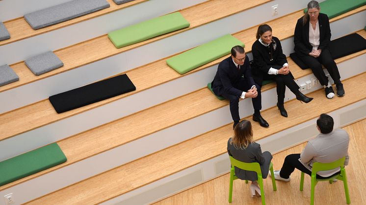 På Högskolan Dalarna fick kronprinsessparet samtala med Eleven Deniz Saygin och Johanna Stickert, som är ordförande för studentkåren. Samtalet med Johanna Stickert och Deniz Saygin kretsade bland annat kring hur studierna påverkats under pandemin och inte minst hur eleverna påverkats ur ett psykosocialt perspektiv. Kronprinsessparet fick även en presentation om en digital barnmorskeutbildning i Bangladesh och Somaliland som sker i högskolans regi. De fick även en inblick i hur pandemin påverkat utbildningen och vad de tar med sig i form av erfarenheter in i det fortsatta arbetet med projektet. Presentationen gavs av Fatumo Osman och Kerstin Erlandsson, docenter i omvårdnad.