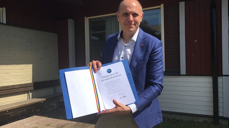 - Dalarna visar vägen när det gäller att fördjupa demokratin! I och med att ni 17 aktörer signerar, förenas ni med mer än 200 andra aktörer som också ställt sig bakom deklarationen och tillsammans gör omkring 1000 åtaganden för demokratin. Det innebär att vi tillsammans kommer nå drygt en halv miljon personer med demokratistärkande insatser som stärker kunskap och fördjupar demokratin i Sverige, sa Peter Örn, ordförande för kommittén Demokratin 100 år.