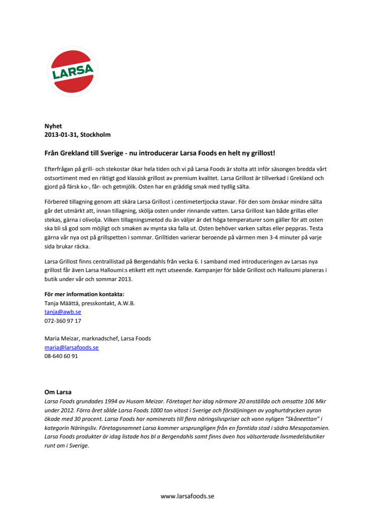 Nyhet! Larsa Foods introducerar en ny salladsost från Grekland