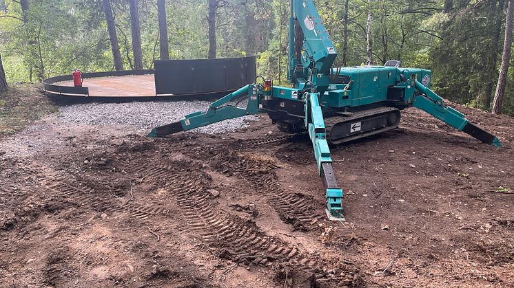 En kran där minneslunden byggs. Hästarna gjorde ingen skillnad i den "känsliga miljön".