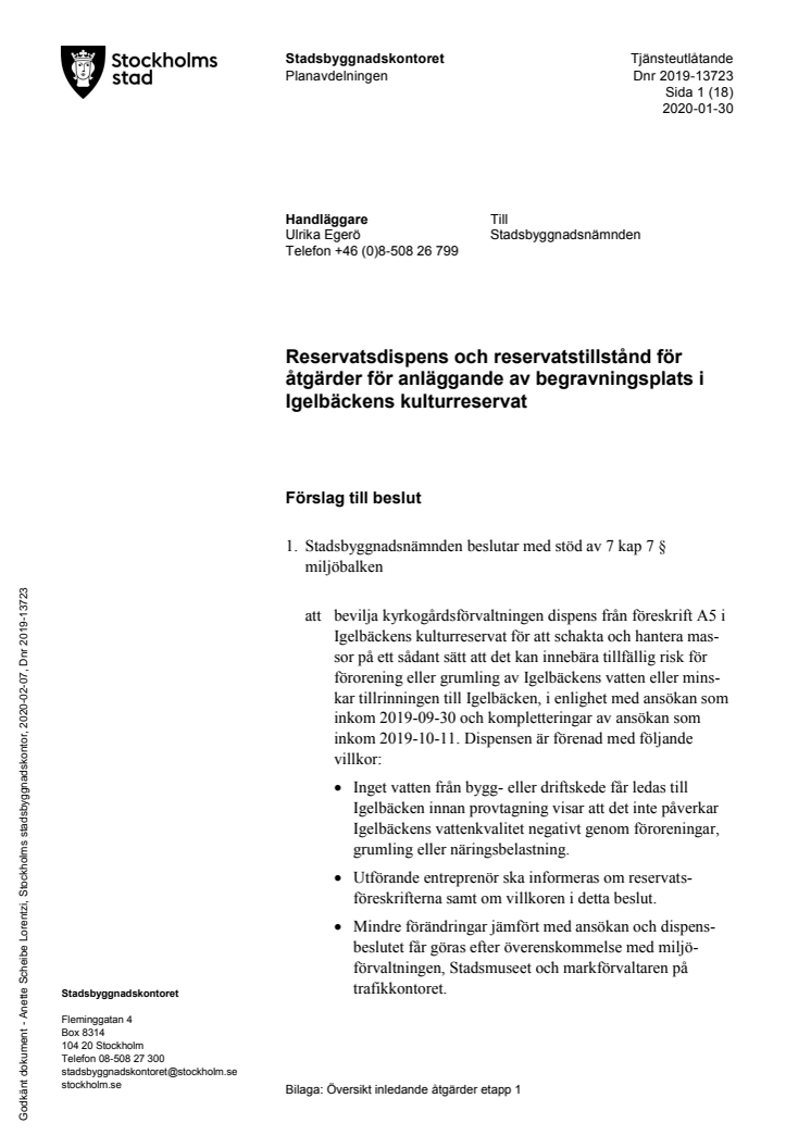 Stadsbyggnadskontorets tjänsteutlåtande ang reservatstillstånd 20 feb 2020