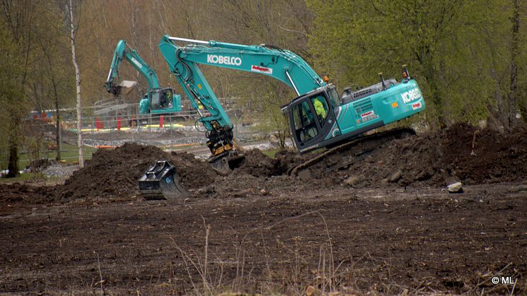 Inte heller NCC:s markentreprenad tyder på att pengar förbrukas snabbare än väntat. Enligt kyrkogårdsförvaltningens tidplan på sajten Stockholm växer skulle vägar och reningsdammar ha byggts under våren. Men dammarna har inte påbörjats.
