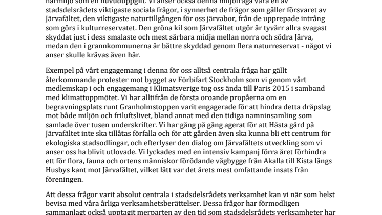 – Vi är förvånade. Norra Järva Stadsdelsråd har i flera år varit djupt engagerad i försvaret av Järvafältet, säger Arne Johansson. Att avvisa vår rätt att överklaga med hänvisning till att vi inte är en ren enfrågerörelse är paragrafrytteri av värsta slag.