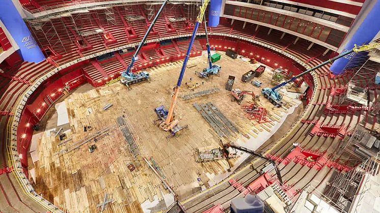För att modernisera världens största sfäriska byggnad krävdes en skräddarsydd lösning in i minsta detalj. Renoveringen har omfattat nya gondolläktare, ny mediakub, ett nytt ljudsystem och en helt ny ringkonstruktion som bär ett öppningsbart innertak för bättre akustik och atmosfär i arenarummet samt ökade riggmöjligheter. Dessutom har delar av läktarna byggts om för att skapa en mer intim publikupplevelse.