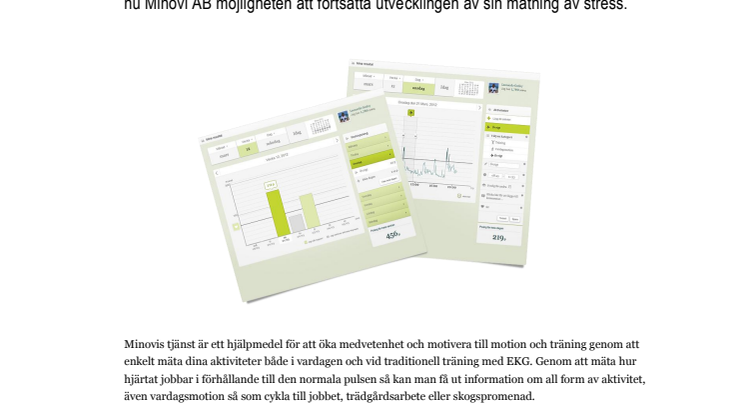 Minovis tjänst är ett hjälpmedel för att öka medvetenhet och motivera till motion och träning genom att enkelt mäta dina aktiviteter både i vardagen och vid traditionell träning med EKG. Genom att mäta hur hjärtat jobbar i förhållande till den normala pulsen så kan man få ut information om all form av aktivitet, även vardagsmotion så som cykla till jobbet, trädgårdsarbete eller skogspromenad.