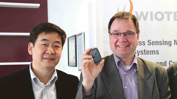 Bildtext: . Forskaren Shaofang Gong och Fredrik Hallgren VD på LEAD-företaget Wiotech AB. Foto: Klas Earlingh