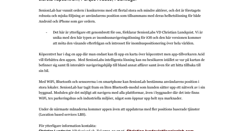 Christian Lundquist, VD SenionLab, Tel 0733-50 37 56, Christian.lundquist@senionlab.com