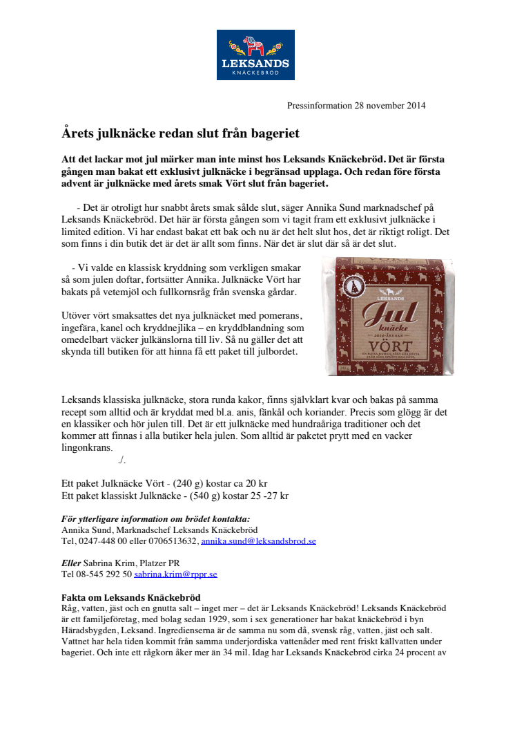 Att det lackar mot jul märker man inte minst hos Leksands Knäckebröd. Det är första
