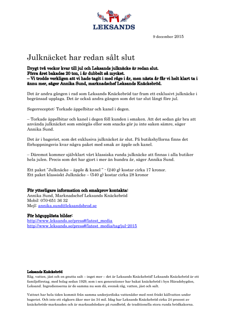 Drygt två veckor kvar till jul och Leksands julknäcke är redan slut.