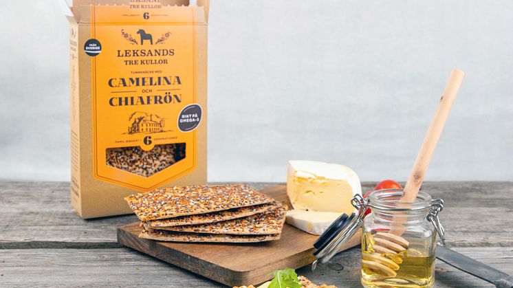 Leksands Knäckebröd har tagit fram ett nytt gott och krispigt tunnknäcke till sortimentet Tre Kullor. Det nya nyttiga och lyxiga knäckebrödet är hantverksmässigt bakat med smak av camelina- och chiafrön.