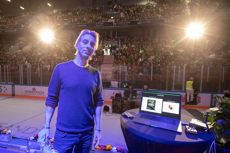 Anders Hansen föreläser inför 4500 skolelever, lärare, anhöriga och kunder till Leksands Sparbank i Tegera Arena.