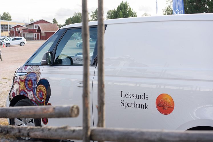 Leksands Sparbanks minibuss, som besöker flertalet platser och evenemang sommaren 2023.