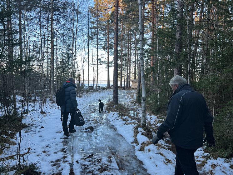 - Pojkviken ägs av samhälligheten S80 och markägarna. För att vi skulle få sätta upp slogboden hade samfälligheten som krav att den ska kunna utnyttjas av alla, och det välkomnar vi såklart säger Nisse som tillsammans med hunden Johnny och Stig och hans hund Doris promenerar längs stigarna ner till slogboden flera gånger i veckan.