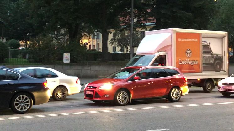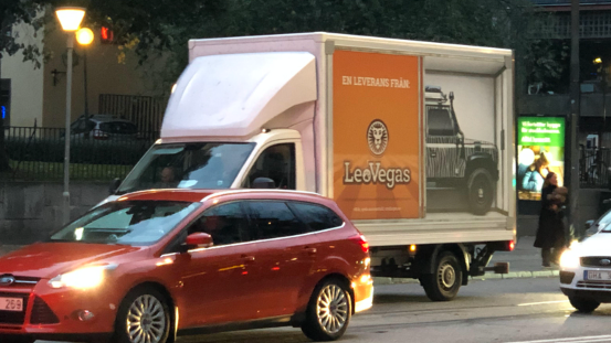 Tio lastbilar rullar på Stockholms gator med olika kreativa budskap från LeoVegas.