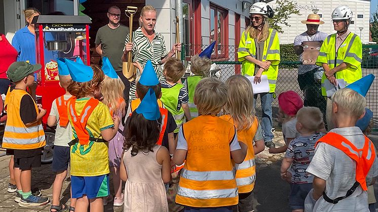 Bäckamadens förskola i Gråbo får en ny tvåplansbyggnad och utemiljö för förskoleverksamhet och hemtjänst. Projektet stödjer den växande kommunen och erbjuder viktiga resurser för familjer. Invigningen uppmärksammades med barnens deltagande och festligheter. Inflyttning planeras 2026/27.
