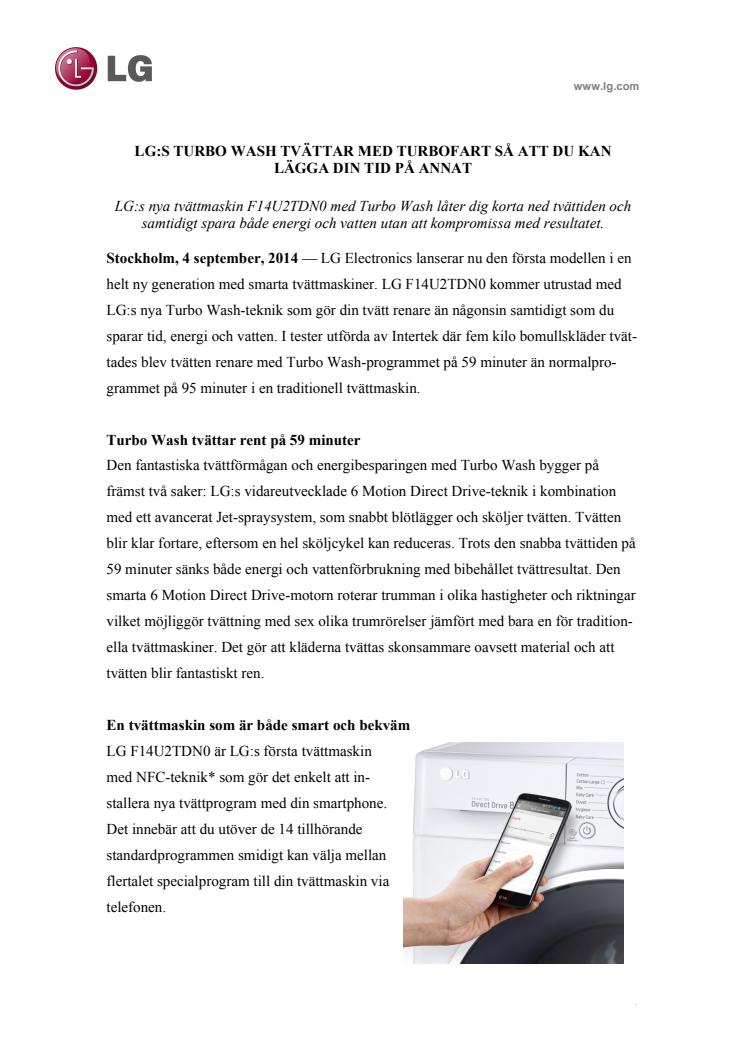 LG:S TURBO WASH TVÄTTAR MED TURBOFART SÅ ATT DU KAN LÄGGA DIN TID PÅ ANNAT