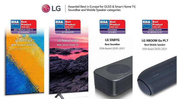 På ljudsidan vann LG Soundbar SN8 och den bärbara högtalaren LG XBOOM Go PL7 EISA SOUNDBAR 2020–2021 respektive EISA MOBILE SPEAKER 2020-2021. Dessa produkter är utvecklade i samarbete med den brittiska ljudteknikexperten Meridian Audio, och levererar ett rikt och stort ljud för en lyssningsupplevelse utöver det vanliga.