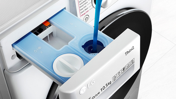I LG:s tvättmaskiner med ezDispense kan du dessutom utnyttjasköljmedelfacket för tvättmedel, vilket innebär färre påfyllningar som är mer skonsamt mot miljön.