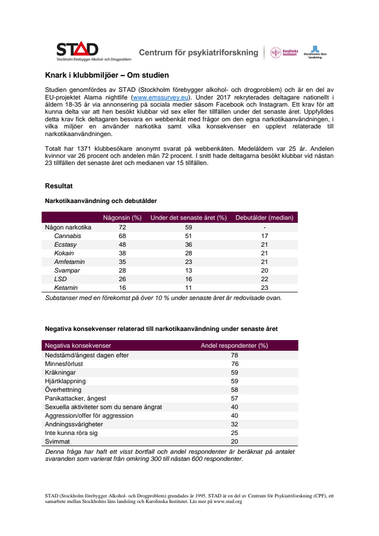 Faktablad STAD om klubbesökares drogvanor