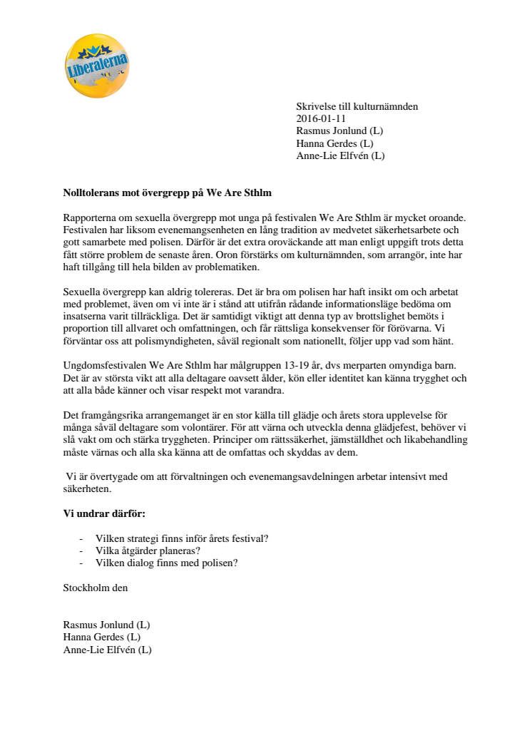 Stoppa sextrakasserierna på ungdomsfestivalen