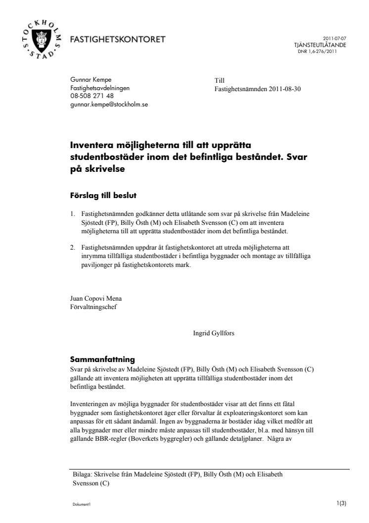 - Stockholm behöver fler studentbostäder för att behålla sin tätposition som utbildningsstad. Det är oerhört glädjande att Fastighetskontoret har hittat ett flertal tomter där det skulle gå att upprätta tillfälliga studentbostäder, säger Madeleine Sjöstedt (FP), kultur- och fastighetsborgarråd.