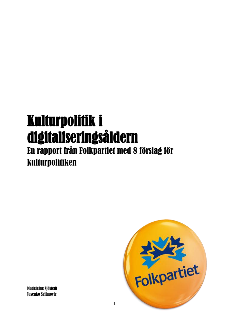 Sjöstedt (FP)/Selimovic (FP): Kulturpolitik i digitaliseringsåldern