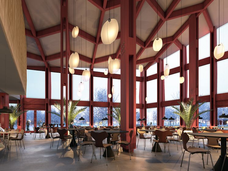 På markplan möts besökaren av ett stort entrérum, öppen spis och en central trapphall. Här finns även ett café och en reception. Den sociala trappan "Dagbrottet" är tänkt att bli skolans nav där elever och lärare leds upp mot byggnadens alla verksamheter och avslutas fem våningar upp i konferenslokaler med terrass och utsikt mot Dundret.