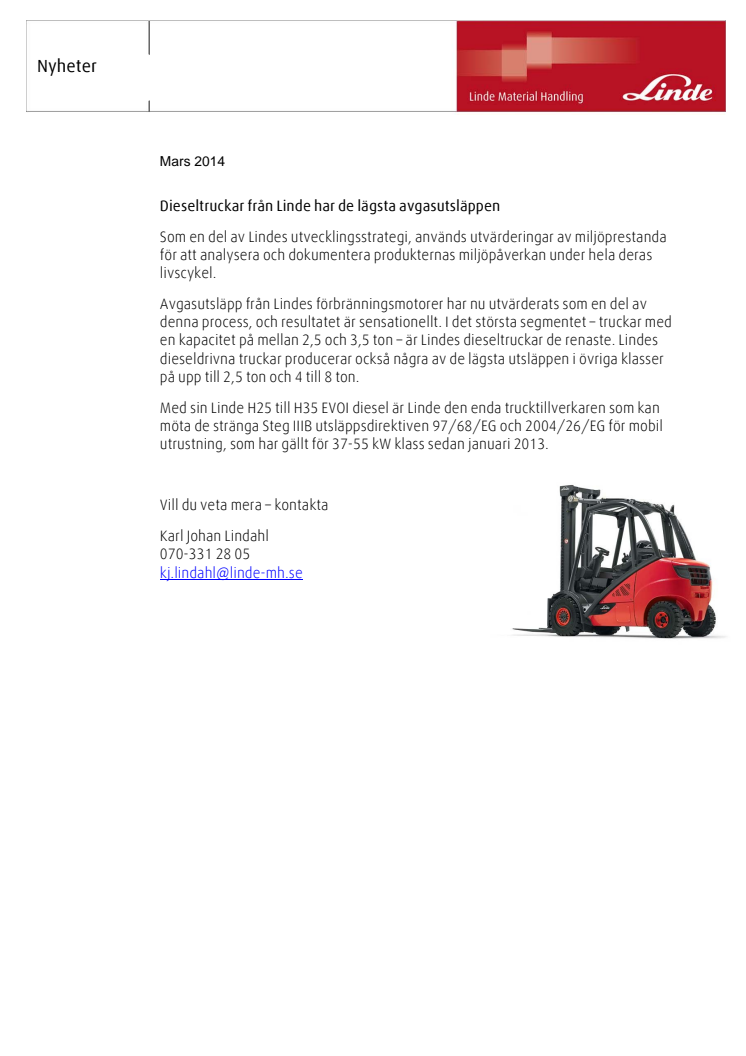 Dieseltruckar från Linde har de lägsta avgasutsläppen