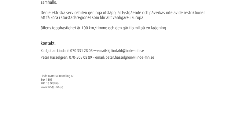 Peter Hasselgren: 070-505 08 89 – email: peter.hasselgren@linde-mh.se