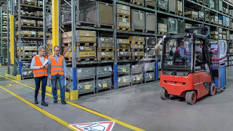 Röda varningstrianglar uppfattas över hela världen som en varning för fara. Linde Material Handling har nu utvecklat ett optiskt varningssystem som tar tillvara på denna uppfattning. Med LED-teknik projiceras varningen hela tiden på golvet bakom trucken, eller endast när trucken backar. Fotgängare och andra truckförare kan tydligt se att en truck närmar sig och i god tid flytta på sig.