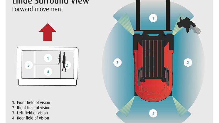Det finns risk för olyckor när fotgängare befinner sig i ”döda vinkeln” för truckförare. Förare upptäcker kanske inte personen i tid – eller överhuvudtaget. Linde Material Handling presenterar nu det nya systemet ”Surround View” för att förebygga riskerna.