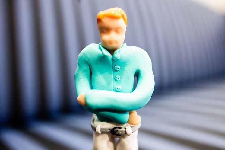 Lerfiguren är gjord av Nathalie Hallin och föreställer undersökningens ateist.