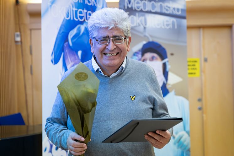 Karel Duchén, mottagare av stipendium från Joanna Cocozzas stiftelse för barnmedicinsk forskning 2023. Utdelning på Medicinska fakultetens fakultetskollegium 14 december 2023.