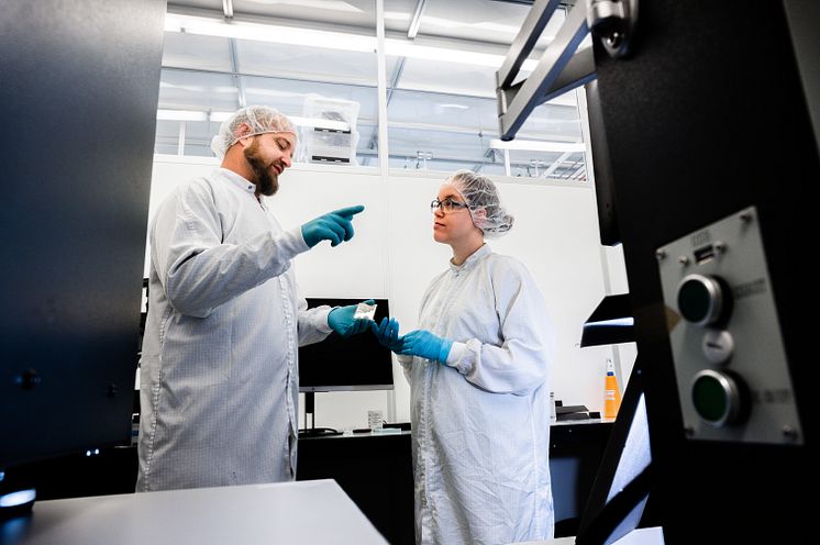 Klas Tybrandt, professor i materialvetenskap, och Laura Seufert, doktorand, på labbet vid Linköpings universitet.