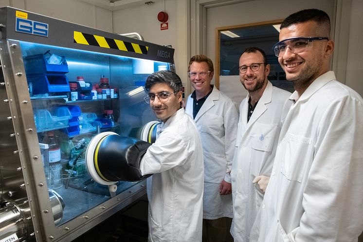 Rouzbeh Samii, Henrik Pedersen, Nathan O’Brien och Polla Rouf i labbet.