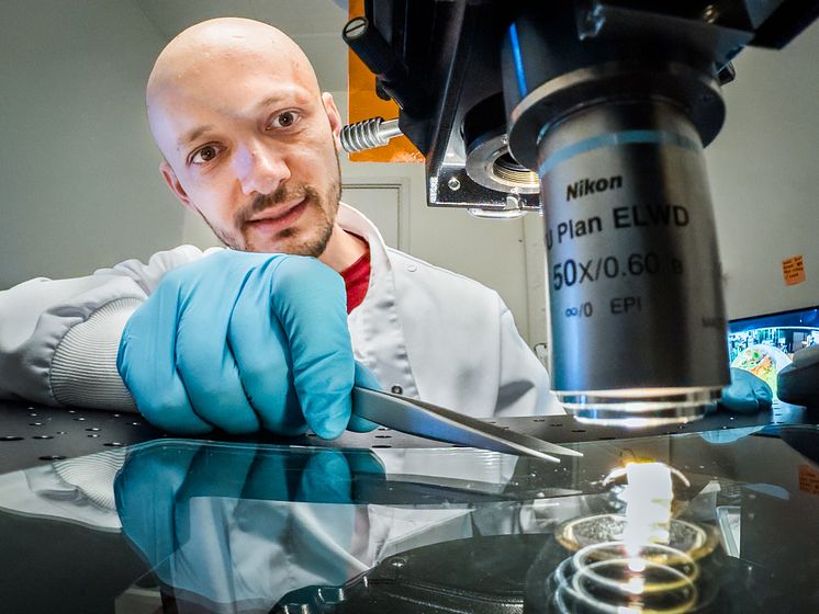 Forskaren Xenofon Strakosas vid Laboratoriet för organisk elektronik vid LiU i Norrköping.