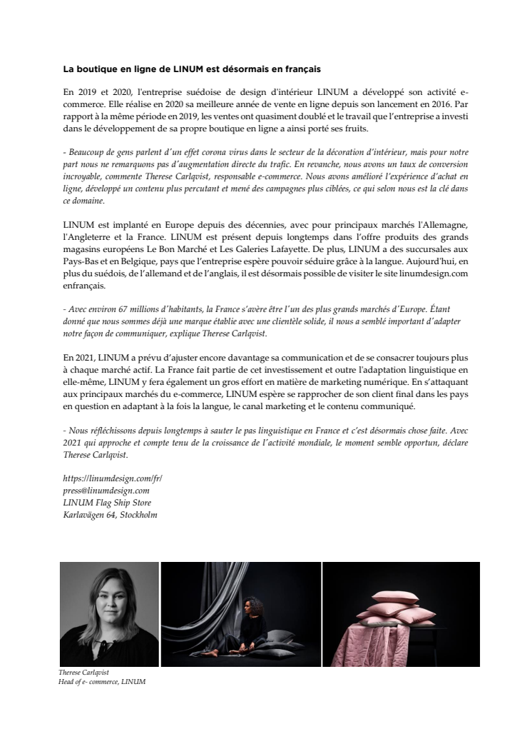 LINUM har hitintills drivit sin webshop på svenska, engelska och tyska. Nytt för i år är alltså franska. Ett viktigt initiativ för att möta den fransktalande kunden ute i Europa.