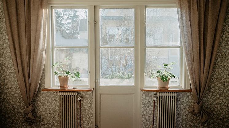 Jag har valt att knyta upp gardinerna här för att jag tycker det ger en härlig och lite busig känsla. Det bästa är ju att det bara är att släppa ut dem sen när man känner för det. När solen strömmar in såhär i sovrummet längtar jag verkligen efter vår och att få öppna upp balkongdörren här och ta en kopp kaffe i vårsolen.