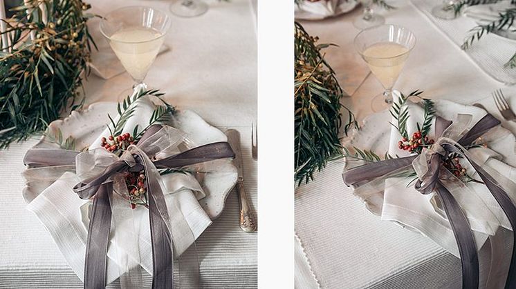 I årets dukning har vi arbetat med en tydlig lager på lager- lösning för att skapa ett fylligt och inbjudande intryck. Som bas återfinns BIANCA bomullsduk, en prisvärd och användbar duk med lätt struktur. BIANCA finns i flera mått och fungerar därav fint att duka med både till det lite större och det lite mindre bordet. BIANCA tål maskintvätt upp till 60 grader och vi brukar säga att ”det här är en duk gjord för att användas”. BIANCA finns i flera attraktiva färger och det är enkelt att mixa och matcha mellan dem. Exempelvis återfinns klassisk julröd, men även en lite gräddigare nyans av vit.
