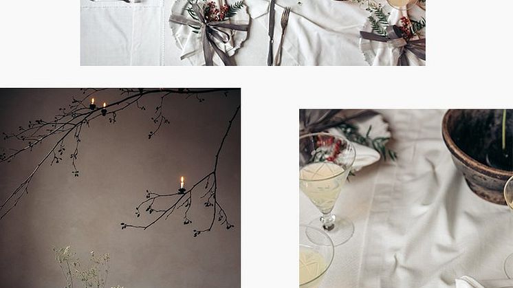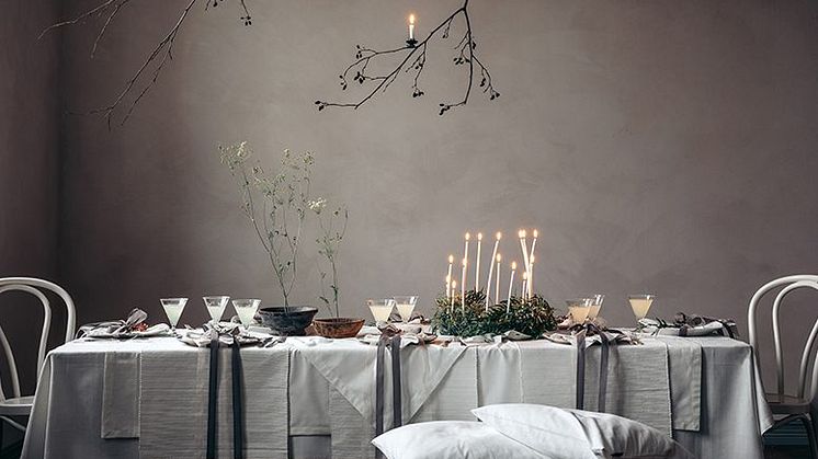 Emma och Emelie har också arbetat med LINUMS mest klassiska produkt för bordet, UNI bordstablett och löpare. Löparen är placerad vertikalt, i stället för horisontellt, vilket skapar ett spännande och nytt intryck. De blandar tabletter och löpare och den ribbade strukturen skapar både liv och dynamik. När nyansen är densamma, i vårt fall färgkod I-01 (vit), så behöver stylingen draghjälp av tygernas struktur, något som UNI’s tidlösa yta bidrar till. Med iögonfallande tillbehör såsom det bekväma kuddfodralet ANNABELL, levande ljus och säsongens allra vackraste växter, blir decembers bjudningar en fröjd att genomföra.