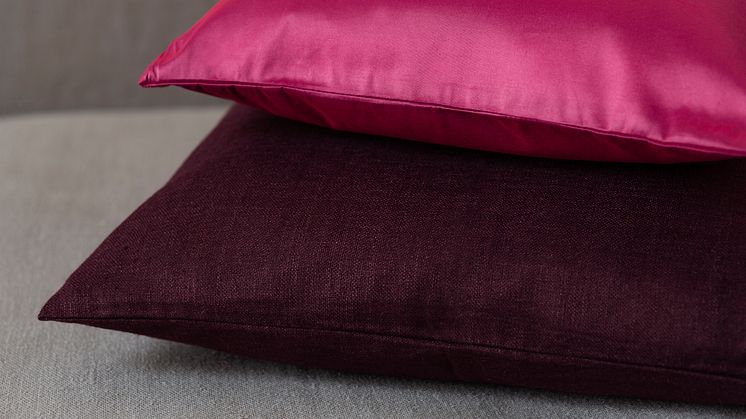 LINUM kan presentera två olika kvaliteter av siden, dupion och rå. Dupion är den klassiskt krispiga med prominent lyster och naturliga variationer i tyget. Råsiden påminner om linne, men tack vare den glansiga silkestråden, får materialet mer djup. LINUM kan erbjuda två storlekar, 40x40cm och 50x50 cm på bägge fodralen. Färgschemat är rikt och vi har valt att presentera både jordnära toner och mer kraftfulla nyanser.