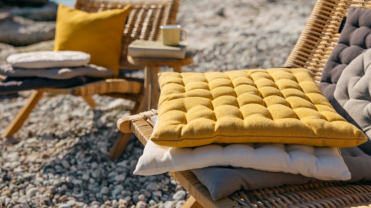 "Inom ramen för varje årstid bjuder vi på en utvald färgkombination, inspirerad av en geografisk plats i Sverige (svensk design sedan 1966). Just nu visar vi senapsgult, vitt och grått med Gotland som fond. Vi talar ofta om "en färg för varje ögonblick", då det ligger någonting visst i att få skapa en unik plats och sedan minnas den med hjälp av en omtyckt nyans, säger Charlotta."