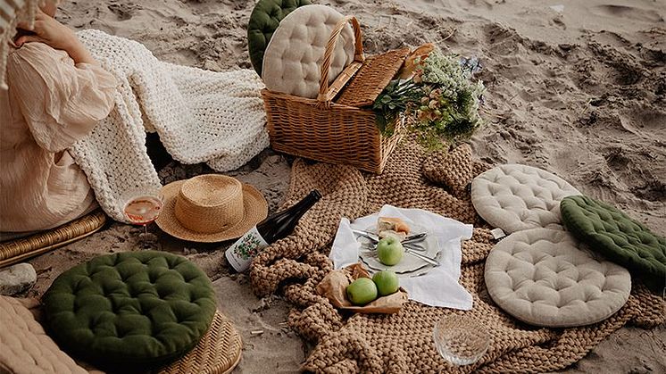 PEPPER sittdyna är mångsidig, det har vi alltid hävdat. Den platsar i trädgården, i ateljén, i båten eller var man nu önskar. Emelie Sundberg och Emma Johansson satte samman en makalös picknick och tog en dag på stranden.