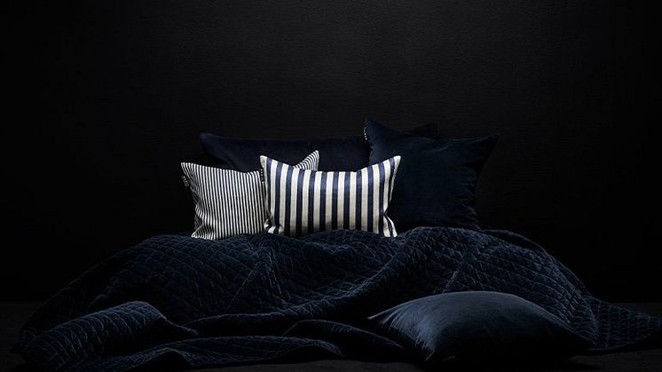 Efter ett dukat bord till jul i vitaste vitt, byter vi nu till en dov nyans av blå. Nyårets middagsbord går i mörka toner och bakom dess lyxiga yta, återfinns textiler som är lika användbara som praktiska.