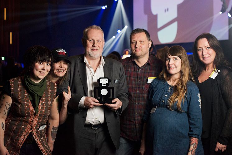 Underhållningschef Per Alexanderson tog emot priset tillsammans med kollegorna, från vänster, Terese Parbring, Hella Colett, Per Alexanderson, Johan Gummesson, Eja Bukowinska och Åsa Bilén.