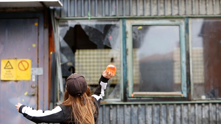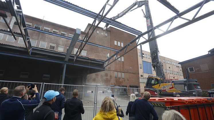 Det första "badtaget" togs av familjen Wikberg som kastade vattenballonger på byggnaden