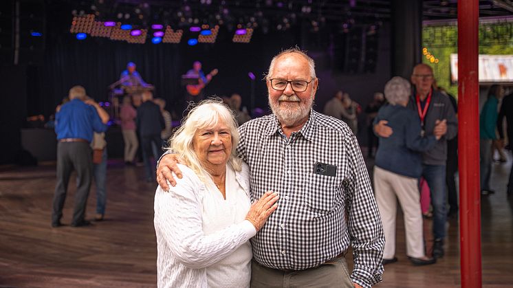 Strax utanför dansbanan träffar vi även Kjell-Åke och Birgitta Persson, som precis konstaterat att de också är jubilarer idag.